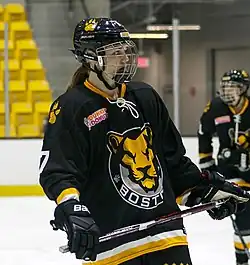 After graduating, she signed her first professional contract with the NWHL's Boston Pride near the end of the 2016/17 NWHL season as a free agent.[7] She played in the last regular season game for the Pride and appeared in both playoff games for the franchise, as they lost in the Isobel Cup finals to the Buffalo Beauts.[8]
