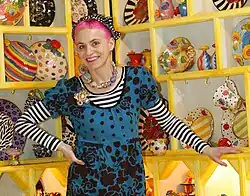 Mary Rose Young was born near London in 1958. She studied ceramics at art college in Wolverhampton. Her first piece of her work to be featured in a magazine was a ceramic filofax.[1]