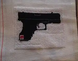 In recent years Schepisi has turned to needlework to address both the personal and political from her strongly feminist perspective. The subject matter for these pieces varies widely, from images of handguns and household cleaning products to indigenous Australian iconography and text-based invectives.[4] A current work-in-progress entails a body of needlepoint revealing an exchange of imagined love letters sent between her Polish grandmother and the fictive Leipzig artist Johann Dieter Wassmann (1841–1898). Of this use of text Schepisi writes:[5]