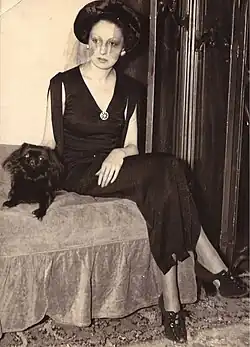 She enlisted the help of William Joyce (later known as Lord Haw-Haw), who had been sacked from the BUF by Mosley in 1937 and had set up the rival National Socialist League and was seeking revenge. He wrote that Mosley was guilty of breach of promise to Taviner, had cast aspersions about her, and had freely shown off a compromising photograph of her. In July 1937, Taviner was observed visiting the NSL's headquarters, and British Intelligence concluded she was blackmailing Mosley.[19] In February 1938, Taviner, described as "a noted society beauty, [who] has appeared on the stage and in several films",[20] launched a lawsuit for slander against Mosley[21] on the grounds of breach of promise and displaying a 'lightly veiled'[18] or nude photograph of herself, which was missing. She represented herself in court, and the case was eventually dismissed, She later accused Joyce of running a 300-strong pre-war spy ring under the noses of the intelligence services, an unlikely claim.[22] Joyce rebutted this charge on air.[23] In 1949 she was declared bankrupt (giving her profession as film producer),[24] and she did not apply for discharge until 1957.[25]