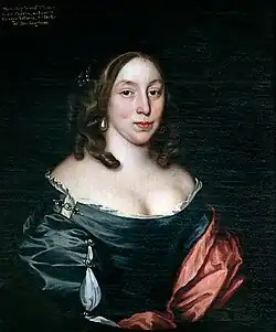 Mary was to have married Philip Stanhope, 2nd Earl of Chesterfield, but developed a preference for Buckingham, whom she married on 15 September 1657 at Bolton Percy, following his return from exile.[5] It has been suggested that Buckingham's pursuit of Mary was part of a scheme to regain possession of his father's former London residence, York House; Fairfax, who had been given the house, went along with this.[6] Buckingham remained under suspicion by the government, and was placed under house arrest a few weeks later. After escaping, he was imprisoned in the Tower of London until his father-in-law, Fairfax, arranged his release in February 1659.