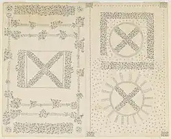 During the Era of Manifestations, Wicks participated in a number of activities that were thought to manifestations of the spirit world, such as spirit visions from an angel named Sha Ka Na La Vinda.[1] In 1843, she and Semantha Fairbanks created a series of "sacred sheets", Shaker gift drawings made in pen and ink. Some of those drawings were covered in a kind of sacred writing that has been described as "visual glossolalia."[3]