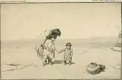 Mary Wright Gill was renowned for her drawings of "fidelity and accuracy."[6] She worked as a contract artist for the Bureau of American Ethnology and produced many of the illustrations used in the BAE's annual reports,[7] such as Matilda Coxe Stevenson's The Zuni Indians.[8] She worked primarily in pen and ink, graphite, and watercolor. Her watercolor illustrations were sometimes composites based on series of photographs, lending them a hyperreal quality.[8]