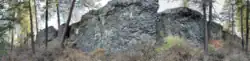 The Cliff Park section of the historic district surrounds the eponymous Cliff Park, a public park that is located not on Cliff Drive, nor along the cliff that runs along the ridge above Marycliff.[13] Instead, Cliff Park surrounds a basalt outcrop that rises over 60 feet above the surrounding terrain[13] and provides sweeping views in all directions.[14] Aside from the outcrop in Cliff Park itself, this section of the historic district is relatively flat. It is located atop the cliff on the southern face of Spokane's South Hill, where the land levels off before beginning to rise steadily again to the south of the district.[13] 14th Avenue serves as the southern boundary and Cliff Drive serves as the northern boundary, beyond which lies the Marycliff section of the district. To the west, the boundary winds along a ridge that drops off to the west and runs along Ben Garnett Way/Grove Street in the east, though there is a salient extending east between Sumner and Cliff Drive for two blocks that is part of the district as well.[6]