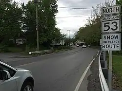Maryland Route 53 (MD 53) is a state highway in the U.S. state of Maryland. Known as Winchester Road, the state highway runs 3.33 miles (5.36 km) from U.S. Route 220 (US 220) in Cresaptown north to US 40 Alternate in La Vale. MD 53 is the northernmost part of the Winchester Road, a colonial era road between Cumberland and Winchester, Virginia. The modern MD 53 was constructed in the mid-1920s and updated in the 1950s.