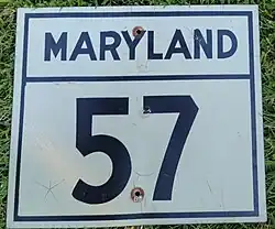 MD 57 was constructed as a state-aid road from US 40 to Broadfording Road around 1916.[4] By 1921, the paved portion was extended north to Rockdale Run.[5] The remainder of MD 57 and what is now MD 494 to the Pennsylvania state line were completed by 1933.[6] The segment of MD 494 from MD 57 to the state line was originally part of MD 57.[7] MD 57 was removed from the run to the state line in favor of MD 494 in 1963.[8]