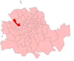 The previous Parliamentary borough of Marylebone was split up in the boundary review of 1884–85. The new Parliamentary borough consisted of the parish of St Marylebone, and therefore had identical boundaries to the St Marylebone Vestry which was the main institution of local government. The Commissioners divided the parish into two Divisions, each of which contained four of the parishes' eight wards. Marylebone West division was defined as containing the Bryanston, Hamilton Terrace, New Church Street, and Portman wards. The population in 1881 was 83,871.[1]