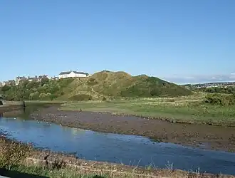 On Castle Hill are the earthworks and buried remains of a 12th-century motte-and-bailey castle. On the summit are the foundations of a World War II gun emplacement.[8]