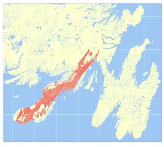 ![]() Occurrence of Marystown Group in southeastern Newfoundland | |