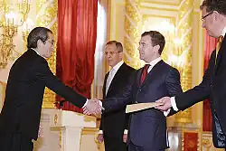- ^ Послы иностранных государств, вручившие верительные грамоты Президенту России (in Russian). Presidential Press and Information Office. 29 May 2009. Archived from the original on 10 September 2012. Retrieved 12 June 2009.