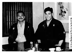 Kimura also trained in karate, believing that karate would strengthen his hands. First, he trained what today is known as Shotokan Karate under its founder Gichin Funakoshi for two years, then switched to training Goju-Ryu Karate under So-Nei Chu (a pupil of Goju-Ryu founder Chojun Miyagi) and finally became an assistant instructor, along with Gogen Yamaguchi and Masutatsu Oyama in his dōjō (the latter also going to university together with him and aikido master Gozo Shioda[5]). In his autobiography, Kimura attributes the use of the makiwara (a karate training implement) as taught to him by So Neichu and his friend and training partner Masutatsu Oyama, as being a significant contributor to his consequent tournament success. He began using the makiwara daily prior to his first All Japan success and never lost another competition bout.