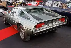 The Maserati Merak (Tipo AM122) is a mid-engined 2+2 sports car produced by Maserati between 1972 and 1983.[1] The Merak was closely related to the Maserati Bora, sharing part of its structure and body panels, but was powered by a 3.0 L V6 in place of the latter's 4.7 L V8. The extra cabin space gained by fitting a smaller and more compact powertrain was used to carve out a second row of seats—suitable for children or very small adults—making the Merak not just a less expensive alternative to the Bora but also a 2+2.