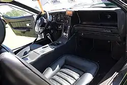 The lightweight and more powerful Merak SS (Tipo AM122/A) was introduced at the 41st Geneva Motor Show in March 1975, although it did not enter production until the next year. The SS featured a 50 kg (110 lb) weight reduction and a 30 PS power increase to 220 PS (162 kW; 217 hp), due to the adoption of three larger 44 DCNF 44 carburettors and a higher 9:1 compression ratio.[4] The SS was recognizable from a black grille between the pop-up headlights. A Maserati-designed upper fascia with round instruments and a four-spoke steering wheel replaced the previous SM-derived interior. Later cars were bestowed with the full driver-oriented dashboard and three-spoke padded steering wheel of the Maserati Bora.[4] The US-spec version of the Merak SS also saw a return to traditional hydraulics, eliminating the last of the Citroën high pressure system. 1000 units of the SS had been made by 1983, when the Merak was discontinued.