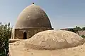 The mausoleum has an area of 600 square metres. The mausoleum is located on the northeastern side. To the left of it is a well for ablutions, located inside a domed building constructed in the late 19th century.[1][7] Inside the mausoleum, there are six rooms, each containing a tomb of a member of the Tabataba family.[7] On the western side of the interior is the door to a small prayer hall. The prayer hall is square and each side is 18 metres long.[9] It is divided into three sections by two rows of perpendicularly attached pillars.[9] Nine domes were used to top the structure, but there are only three remaining.[8]