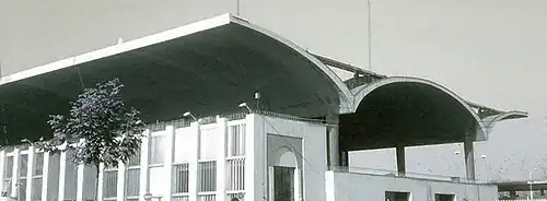 The station has an elongated plan with two rows of oval concrete columns on two axes, and a wavy roof is mounted on them. There are two wide side columns inside the space. The result of this design was an open and integrated interior space, which the sequence of columns, the contrast of concrete and glass, and how the light enters from inside, added to the splendor and sense of peace of the space. Upon entering, this building greets the travelers with a suspended and huge ceiling, and then passing through an array of columns, it reaches a hall with a high arch, which creates greatness in the viewer's mind.[3] Mashhad railway station has been the most prominent building belonging to contemporary architectural trends in Mashhad.[4]