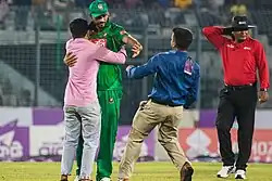 Mashrafe was ranked as one of the most famous athletes in the world on ESPN World Fame 100 in 2019.[19][20] According to Antiguan first-class cricketer Andy Roberts, Mashrafe is the most talented cricketer in Bangladesh.[21] He became only the fifth bowler in history to take 100 ODI wickets as a captain.[22][23] Mashrafe is also the first pace bowler in Bangladesh who bowled a delivery clocking over 147 km/h, which he did during a Test against New Zealand at Hamilton in 2001.[24][25] Mashrafe's career has been hampered by fifteen injuries as he has undergone a total of ten operations on his knees and ankles.[26][27] On 6 March 2020, Mashrafe, at the age of 37, announced his retirement from national team captaincy by playing the last match of the ODI series against Zimbabwe.[28]