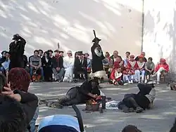 The maskarada [mas̺ˈkaɾada] is an itinerant set of traditional dances, theatre acts and parades that takes place annually in different towns and villages across the Basque region of Soule, France (Zuberoa in Basque), during the time of carnival. It is generally referred to in the plural (maskaradak) as it is repeated across the region on the streets of villages (one day per village) over the span of a month or two in late winter through spring. The plays are performed by the villages' (usually younger) inhabitants, and the arrangements for each maskarada are the responsibility of each participating village. Sometimes, when two villages are very small, they will share arrangements together.