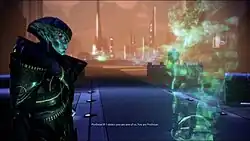 Shepard and asari scientist Liara T'Soni discover an intact stasis pod containing a live Prothean shortly after their arrival in Eden Prime, and must battle Cerberus ground forces as well as interpret archived video footage that contains the necessary codes to open the stasis pod.[2] Following the completion of the mission, the Prothean endling known as Javik joins Shepard's squad; he utilizes a combination of biotic abilities and gunplay in combat.[2] The pack integrates new conversation options, cutscenes, and ambient dialogue involving Javik into the main game.[3] The pack also adds a Prothean-themed energy weapon called a particle rifle, a new biotic ability called Slam, as well as cosmetic options to customize the appearance of all squad members.[2]
