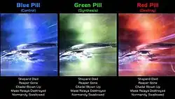 Opinions over the game's endings divided many critics. Among the criticisms include the ending rendering character choices inconsequential; a general lack of closure; lore contradictions and plot holes; character and narrative inconsistencies; the absence of a final boss battle; and inconsistencies between statements by BioWare staff during the game's development and the form the endings ultimately took.[15][16][17][18][19] Commentators took note of the magnitude and scale of the public reaction and highlighted how invested the series had made its players. A widely discussed fan theory proposed that the endings were a hallucinated consequence of Shepard's gradual, forcible Reaper indoctrination over the course of the trilogy, also positing that the "Destroy" ending was purposely colored red to dissuade Shepard from picking it, and thus, overcoming the mind control.[20] Dissatisfied fans also turned the final enemy unit encountered in combat into a sarcastic Internet meme called Marauder Shields.[21][22]