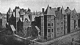 Massachusetts Homeopathic Hospital was a homeopathic institution in Boston, Massachusetts, at which the first successful kidney removal in New England was performed.[1] Established by an act of the Massachusetts legislature in 1855, the hospital opened its doors in 1871 at a site in Jamaica Plain. In 1874 it moved into a newly built facility in the South End of Boston. Over the next 30 years, its facilities in that area were expanded, and in 1908 it opened a satellite facility in Brighton for the treatment of contagious diseases.[2] The hospital eventually abandoned homeopathic practices, and in 1929 was renamed the Massachusetts Memorial Hospital to better conform to modern nomenclature.[3]