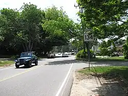 Massachusetts Route 134 is a 5.31-mile-long (8.55 km) north–south state highway entirely within the town of Dennis on Cape Cod in the U.S. state of Massachusetts. About 5.3 miles (8.5 km) long, Route 134 begins at an intersection with Route 28 in West Dennis. The route crosses north through Dennis, crossing US 6 at a cloverleaf interchange mid-way through. Route 134 ends at a junction with Route 6A in East Dennis, not far from Cape Cod Bay.