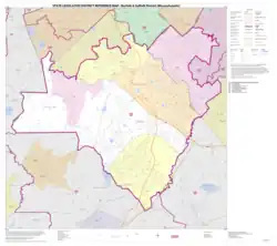 In Suffolk County, the district currently encompasses Boston Ward 18, Pcts. 9-12, 16-17, 19-20, 22-23; Ward 19, Pcts. 2, 3, 5, 8-11, 13; and Ward 20.[2]