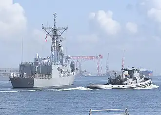 ![]() Massapequa (YTB-807) breaks away from the guided-missile frigate USS Vandegrift (FFG-48) as the frigate departs Yokosuka Bay for the last time as a home-ported vessel of Commander, Fleet Activities Yokosuka (CFAY), Japan, 14 August 2006.