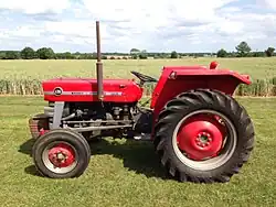The MF135 was the first of the MF100 range, and was a successor to the MF35.[2] Production began in 1964 and ended in 1975, when it was succeeded by the MF235.[1] Several hundred thousand were produced, and along with the sister MF165, were the most popular tractors of the era.[3] The tractor is still sought after in the 21st century in the second-hand market due to demand in developing countries, one of the main reasons being its simple mechanical construction and high reliability, as well as familiarity with the model from farmers' experiences studying at British agricultural colleges.[3]
