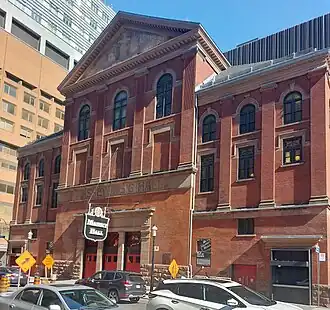 Massey Hall is a performing arts auditorium in Toronto, Ontario, Canada. Opened in 1894, it is known for its outstanding acoustics and was the long-time hall of the Toronto Symphony Orchestra and the Toronto Mendelssohn Choir. Although originally designed to seat 3,500 patrons, after extensive renovations in 1933 its capacity was reduced to 2,765.[1] Its extensive history includes concerts by many of the most famous artists of the past century and more, across many musical genres, which is a pattern that continues to the present day.