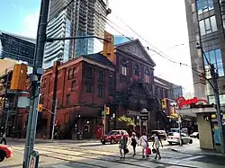 It is operated by The Corporation of Massey Hall and Roy Thomson Hall, a non-profit charitable organization.[3] It is located at the intersection of Shuter and Victoria Streets, just east of Yonge Street, in downtown Toronto.