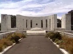 Massey was Prime Minister from 1912 to 1925, when he died in office. After his death Parliament passed the Massey Burial-ground Act, which allocated 0.8 hectares of land for a burial ground for him and his widow Christina.[1] The land had been used for defence purposes during World War I and had lain unused since then. A fort was converted to a crypt and a gun-pit lined with marble to serve as a vault. The rest of the memorial was completed in 1930 at a cost of £15,000, most of which was raised by public subscription.[2]