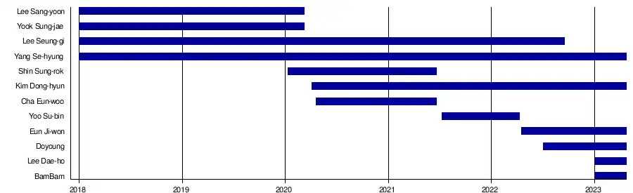 Yoo Su-bin then joined as a fixed cast member on episode 180, followed by Eun Ji-won from episode 216.[14][9] Yoo left the show on April 10, 2022, with episode 215 being his last.[8]