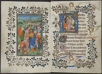 The Master of Zweder van Culemborg (sometimes referred to as Master Pancracius) was a North Netherlandish painter of illuminated manuscripts active in the area around Utrecht between 1420 and 1440. His namepiece is a canon page in a Missal depicting a bishop worshipping the crucified Christ. According to a coat of arms in the border of the painting, the religious is Zweder van Culemborg, nominated to the town's bishopric in 1423; he was, however, unable to take his position until 1425. In 1431 he left for the Council of Basle; he died there two years later.