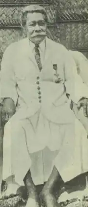 He was appointed an honorary Officer of the Order of the British Empire in the 1935 King's Birthday and Silver Jubilee Honours, and was invested in February 1936,[5] but died a few weeks later after a long illness.[1] He was buried at Mulinuʻu in the burial ground housing the royal tombs of the Tama-a-Aiga, Samoa's highest chiefs.[1]