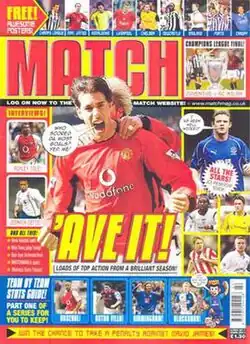 Match, stylised as MATCH or MATCH!,[3] is a weekly British football magazine aimed at the teenage and pre-teenage market. First published in 1979, the magazine had a circulation of 57,108 copies in December 2010.[4] The magazine includes interviews, a skills school, quizzes and a weekly round-up of results, tables and player ratings from the four main English divisions and the Scottish Premier League in MatchFacts. It mostly covers teams and players in the English Premier League, but also has a limited coverage of La Liga, Serie A and international football.