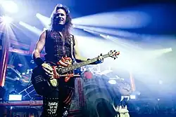 Mate Molnar (Hungarian: Molnár Máté) (born 25 May 1979) is a Hungarian musician who is the bass player and a backing vocalist of the Finnish heavy metal band Beast in Black. He was also a member of the power metal band Wisdom, which he had founded while he was at university. Molnar is known for his unique-looking bass guitars, handcrafted by GV Guitars.