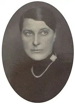 Mathilde Flögl was born on 9 September 1893 in Brno, Czech Republic.[12] Between 1909 and 1916, she studied at the Kunstgewerbeschule (School of the Applied Arts) in Vienna.[13] During her education, Flögl focused on applied graphics and enamelling taught by Josef Hoffman and Oskar Strnad among others.[13] Flögl died in 1958 in Salzburg, Austria.[3][14]