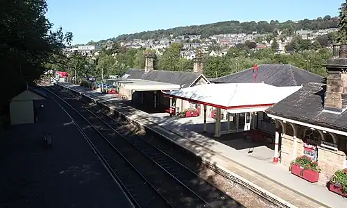 Matlock railway station serves the Derbyshire Dales county town of Matlock, in Derbyshire, England. The station is the terminus of both the Derwent Valley Line from Derby and Peak Rail which operates heritage services to Rowsley South. Both lines are formed from portions of the Midland Railway's former main line to Manchester Central; through running is technically possible, but is not done in normal service. The station is owned by Network Rail and managed by East Midlands Railway.