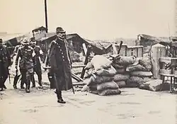 The fighting also took a toll on Chinese civilians, and even at the height of the battle Matsui took a special interest in the plight of Chinese refugees.[47] In October he ordered that improvements be made to living conditions in Chinese refugee camps and later he made a large personal donation of $10,000 to the French humanitarian Father Jacquinot to help him in establishing a "safety zone" for Chinese civilians in Shanghai.[47][48]