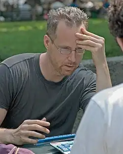 ![]() Graham playing Scrabble in Washington Square Park, 2007 | |