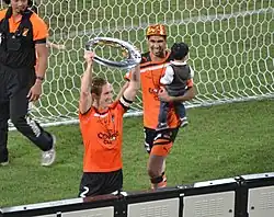 ![]() Smith with the A-League trophy (Brisbane Roar, 2012) | |||