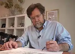 In August 2017, a cartoon that he drew in response to Hurricane Harvey was criticized for being insensitive to victims of the hurricane. The cartoon depicted a man in a Confederate-flag shirt being winched from a house with a "Secede" sign, as one of the rescuers points out that they had been sent by the government. A tweet from Politico containing the cartoon was later deleted.[2][3]