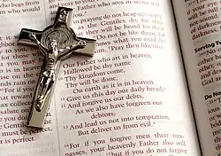 ![]() A crucifix on an open Bible showing Matthew 6 with the Lord's prayer (Matthew 6:9–13). | |