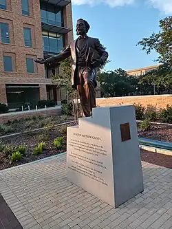 In 1998, activists on the campus of Texas A&M University suggested Gaines should have his statue displayed prominently. The project was abandoned in the wake of the Aggie Bonfire tragedy in 1999.[7] However, 19 years later, Texas A&M students and other supporters pushed yet again for the establishment of a statue of Matthew Gaines on the Texas A&M College Station campus. On June 19 of 2020, the donation goal of the “Matthew Gaines Initiative” was surpassed. A statue of Gaines was unveiled and dedicated on November 19, 2021.