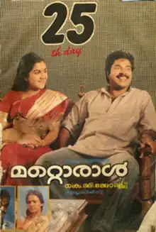 Mattoral (lit.: The Other) is a 1988 Indian Malayalam-language family drama film directed by K. G. George from a story by C. V. Balakrishnan, who co-wrote the screenplay with George.[1] It features Karamana Janardanan Nair, Mammootty, Seema and Urvashi in the lead roles. The plot focuses the life of two couples' Silent treatment and the sudden desertion of a housewife.[2][3]