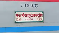Mau–Anand Vihar Terminal Express, is an Indian Railways train of North Eastern Railway Zone Varanasi Division. It was introduced in 2013's Railway Budget and hence initiated its journey from November 2013. It operates bi-weekly and covers a distance of 833 kilometres (518 mi) from Mau Junction to Anand Vihar Terminal. Mau Express consists of 23 coaches which includes one AC-II coach, four AC-III coaches, seven sleeper class coaches, nine general (unreserved) coaches and two SLR coaches.[1][2][3]