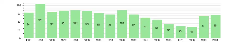As of 2000, there were 37 private households in the municipality, and an average of 2.2 persons per household.[9] There were 14 households that consist of only one person and 3 households with five or more people. Out of a total of 40 households that answered this question, 35.0% were households made up of just one person. Of the rest of the households, there are 12 married couples without children, 11 married couples with children[10]