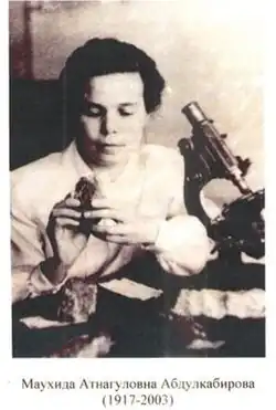 Maukhida Atnagulovna Abdulkabirova (Russian: Маухида Атнагуловна Абдулкабирова; Kazakh: Маухида Атнағұлқызы Абдулкабирова; 1917-2003) was a Soviet geologist, metallurgist and stratigraphic researcher from Kazakhstan. She worked for the Institute of Geological Sciences of the Academy of Sciences of Kazakhstan, and became Head of Special Metals Sector and Scientific Advisor.