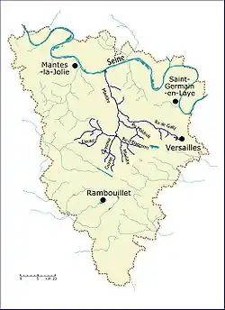 One of its affluents is the ru de Gally, whose source is in the gardens of Versailles.