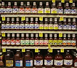 Maull's barbecue sauce is a popular barbecue sauce in St. Louis, Missouri and is a common ingredient in preparing St. Louis–style barbecue. It is a rich and pungent, spicy semi-sweet, tomato based sauce, somewhat unusual for containing anchovies and pepper pulp. Maull's makes eight varieties of sauce now: Genuine, Sweet-N-Mild, Sweet-N-Smokey, Onion Bits, Beer Flavor, Smokey, Jalapeño, and a Kansas City–style barbecue sauce.